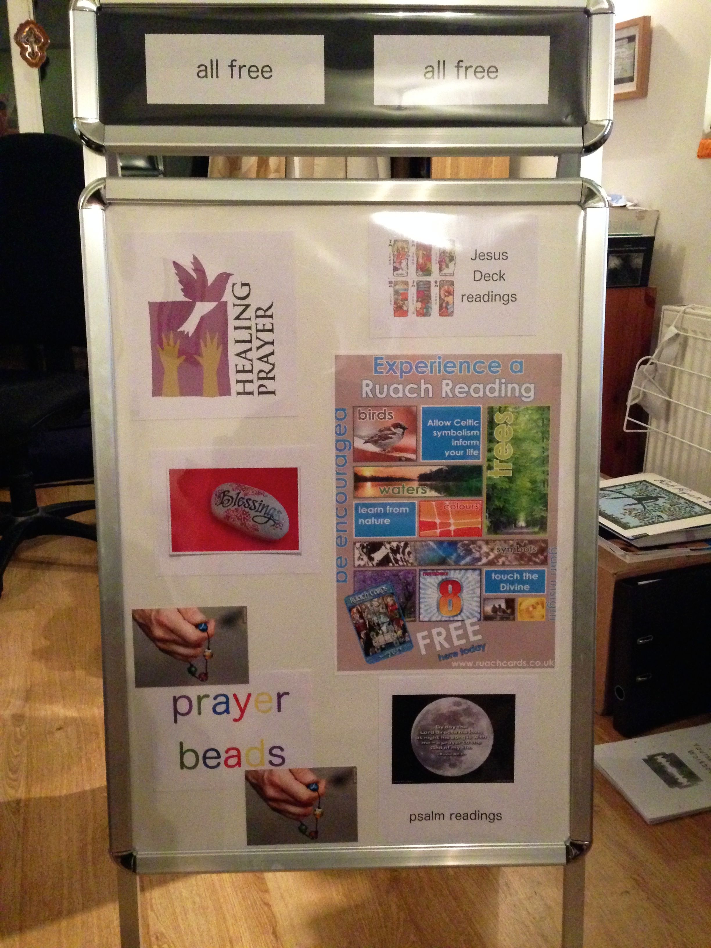 Ruach insight readings … Liz and myself hd training in this only last week … but we think this will work well in the boot fair setting. We shall see and stepping out means trying new things to see how they work. We will be looking at cards, asking if anything resonates or clicks with the person. At the end we will offer to pray with them.