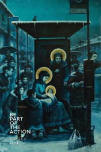 I can’t quite work out why, but the image ‘resonates’ in a way that provokes and excites me because it challenges the traditional image that seems to have become warm and respectable. The King of the Universe, born in a freezing bus shelter with some not even bothering to notice – now that’s shocking!